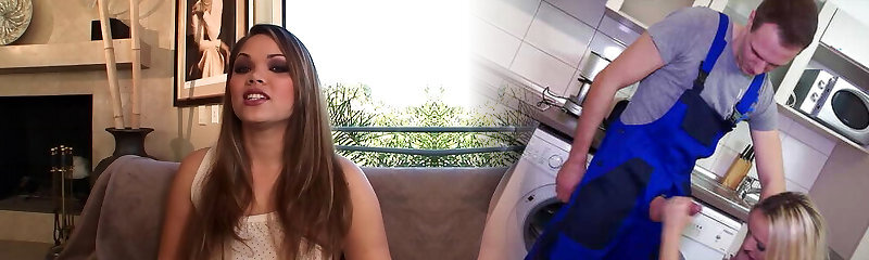 My step-mother sucks my cock and jerks my wood before getting creampie filled , view from below