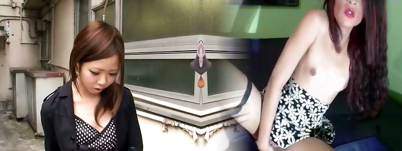 Super-cute down blouse of a uber-cute japanese stunner dressed in ebony boulder-holder