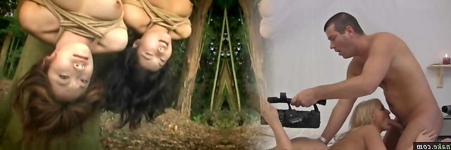 Two femmes string up upside down while getting crammed up with penis