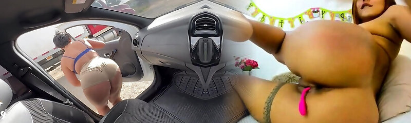 Chubby chick is pleasing a big black cock neighbour with a hot blowjob and tight pussy in the car