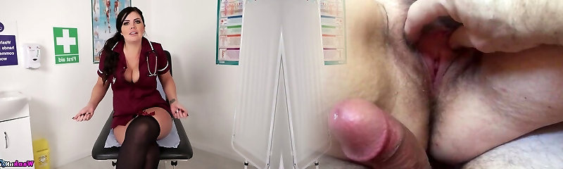 Sexy Busty Redhead Nurse Angel Wicky Knows the Best Way To Collect Pleasure Gel Samples With Her Cunt & Ass