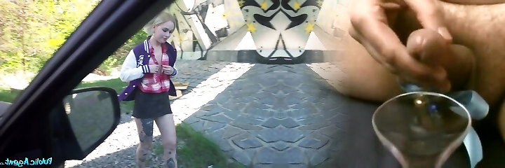 Chubby chick is pleasing a big black cock neighbour with a hot blowjob and tight pussy in the car