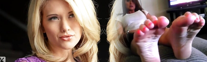 Carlie Christine the pretty towheaded fondles her mammories lying on a couch