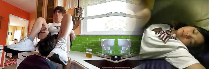 A duo of stepbrothers have a excellent fuck in the dining room, after a family dinner. She pops in her mouth.
