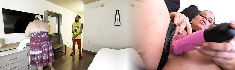 Big Boob big-titted milf white girl maid with hot tastey fat ass in mini dress panties to the side cleaning house showering