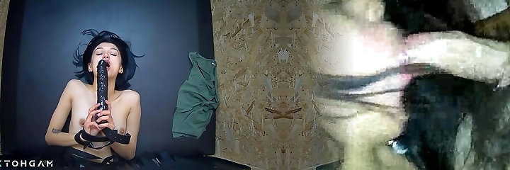 Monstrous titted woman, Danielle Derek sucked and fucked a hard, black cock through a gloryhole