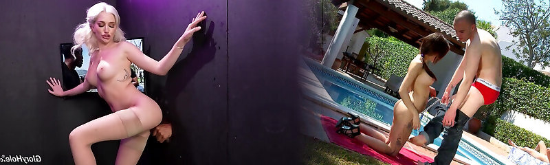 Curvy blonde babe in tights gets put in a gloryhole room, where she satisfies stiffys with insane skill