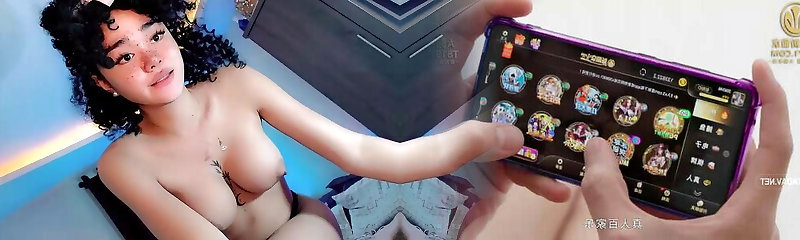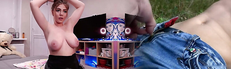 Teen sexy girl with humungous boobs masturbates in her jacket